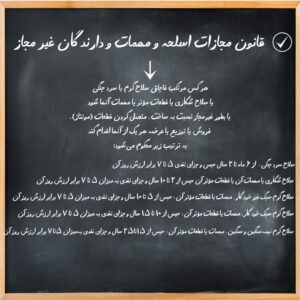 سلاح گرم سبک خودکار: ۵ تا ۱۰ سال حبس و پرداخت ۵ تا ۷ برابر ارزش روز سلاح.