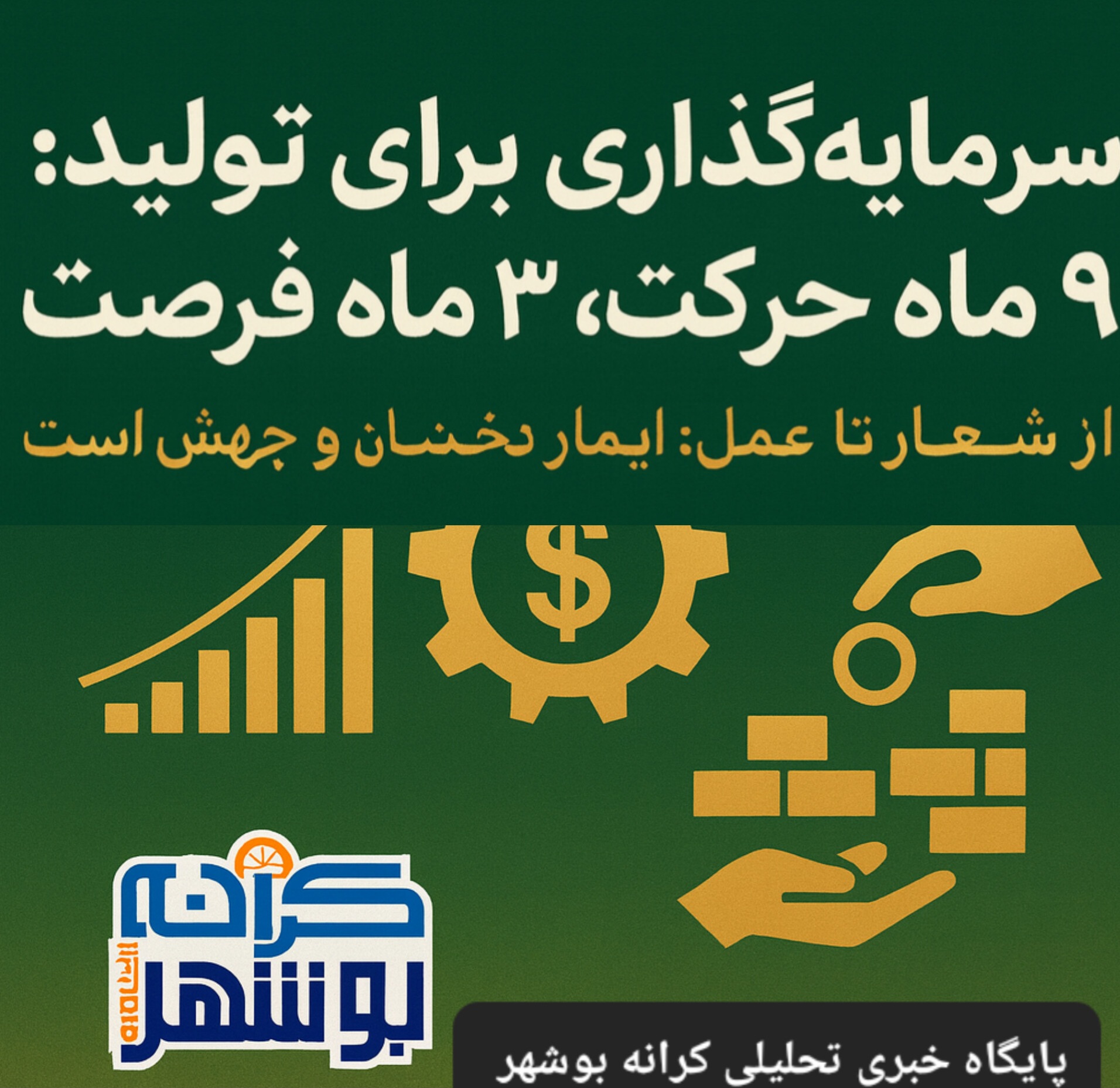 به گزارش پایگاه خبریتحلیلی کرانه بوشهر، با گذشت ۹ ماه از سال ۱۴۰۴ که با عنوان «سرمایهگذاری برای تولید» نامگذاری شده است، بخشهای مختلف اقتصادی کشور شاهد فعالیتها، پیشرفتها و حرکتهای ارزشمندی بوده و اکنون زمان آن رسیده است که با نگاه واقعبینانه و امیدوارانه به ادامه مسیر، شرایط برای تقویت این روند در سهماهه پایانی سال مهیا شود.